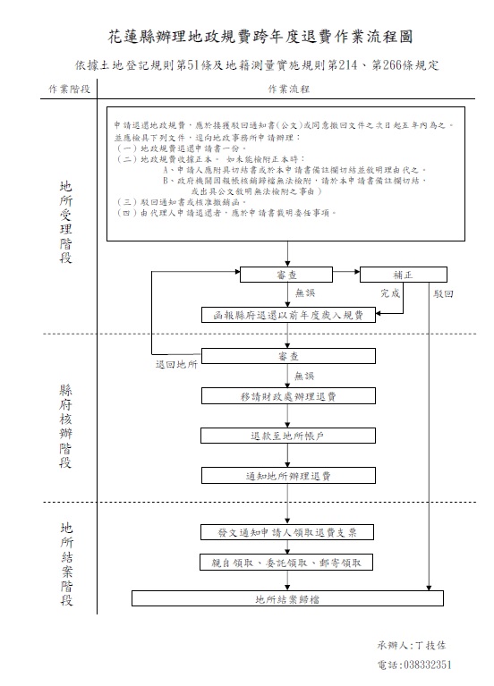 花蓮縣辦理地政規費跨年度退費作業流程圖